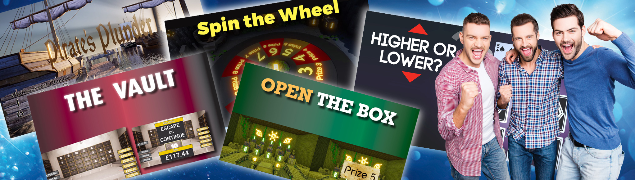 Fun, interactive games including favorites such as Higher or Lower, Spin the Wheel, Race Night, Magic Keys and The Vault. Customers will love them!
